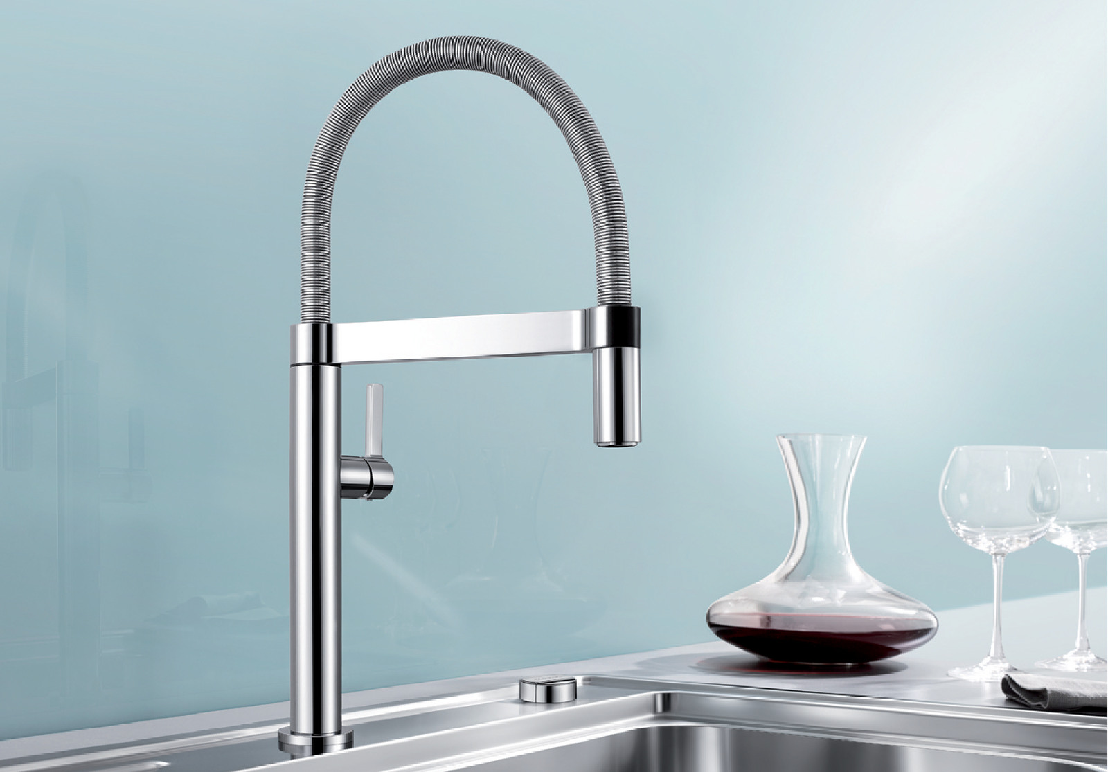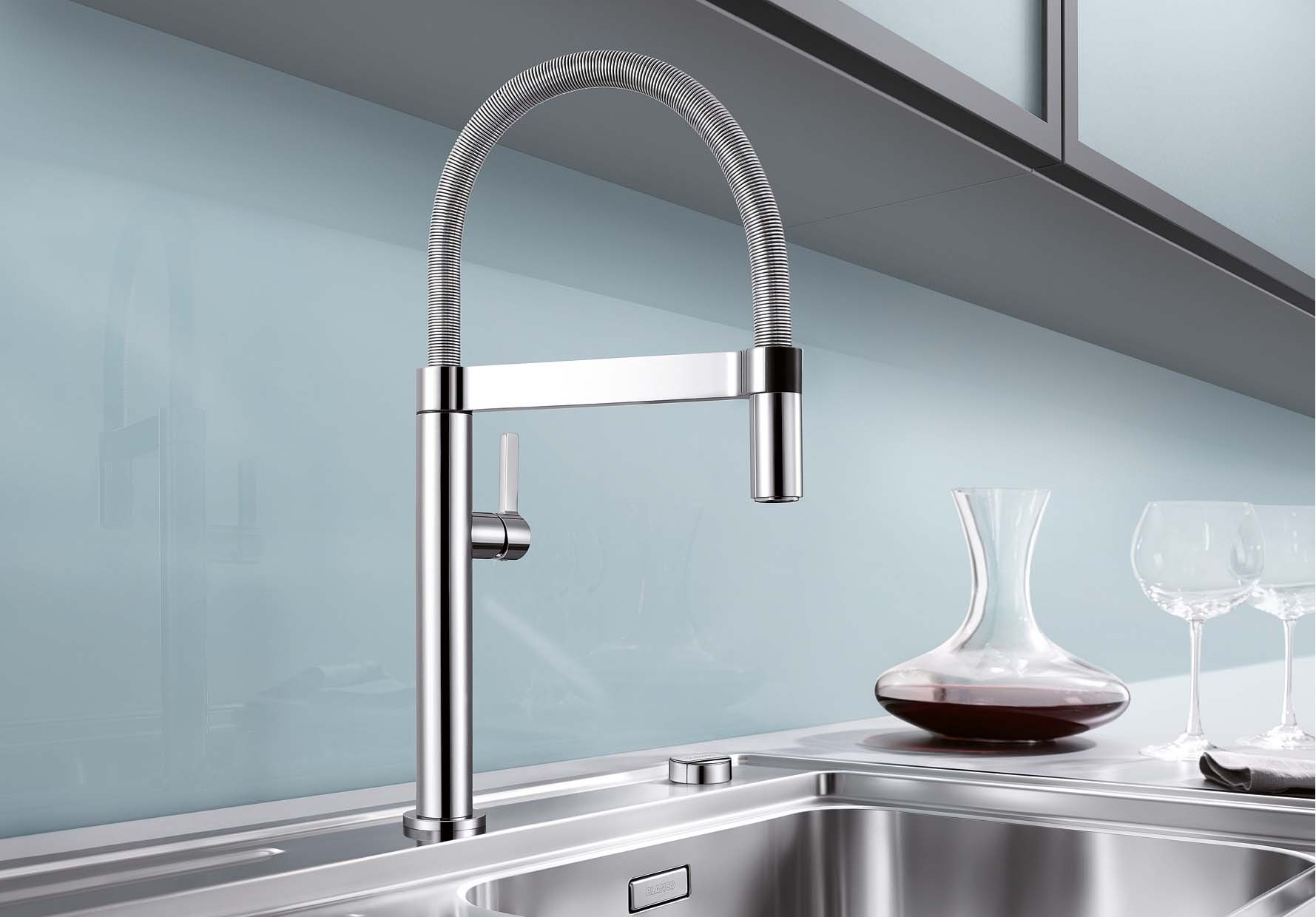 - Изящная пружина из нержавеющей стали обеспечивает свободу движения излива
