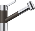 Blanco Tivo-S - гибкий смеситель для кухни с длинным выдвижным изливом в металлической оплетке. Выдвижная лейка данного смесителя оснащена переключателем струя/душ для большего комфорта в мытье посуды и продуктов, а так же в уходе за мойкой.