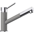 Универсальный смеситель. Однорычажный кран подключение к водопроводным сетям. Сочетание материалов хром/SILGRANIT