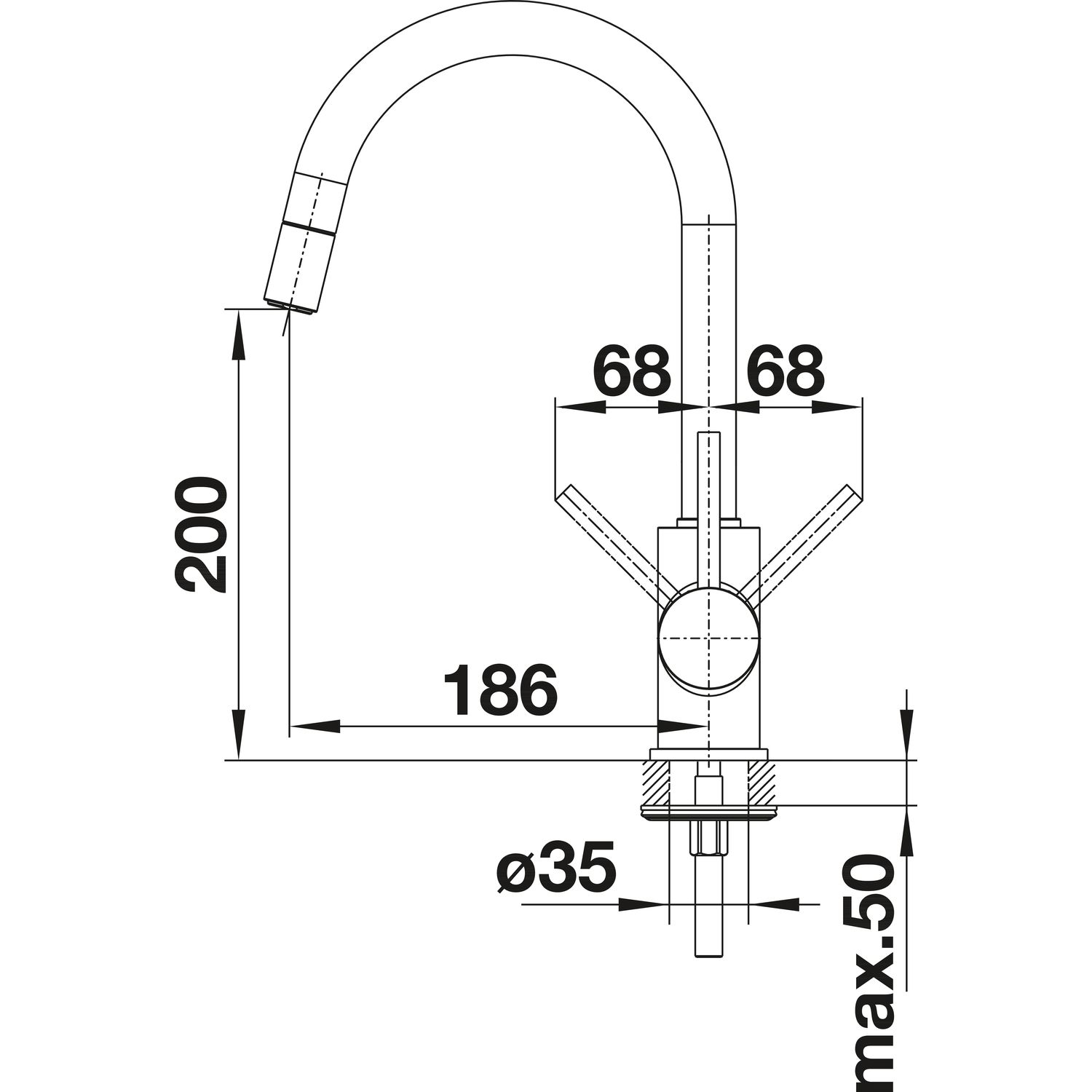 - Увеличенный радиус действия благодаря изливу, вращающемуся на 360°