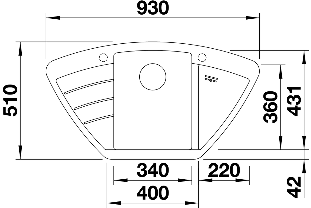 • Вместительная основная чаша с малыми радиусами закруглений расположена по центру