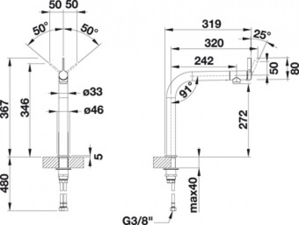 - Требуется отверстие под смеситель Ø 35 мм